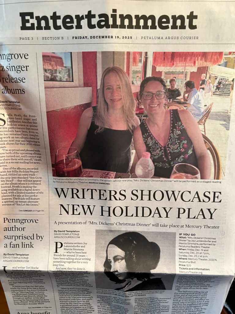 This December, Petaluma Readers Theatre put on a staged reading of our play, which was a fascinating experience. They put on three performances at Mercury Theater here in Petaluma, which drew big, kind, enthusiastic crowds.